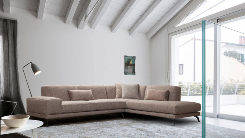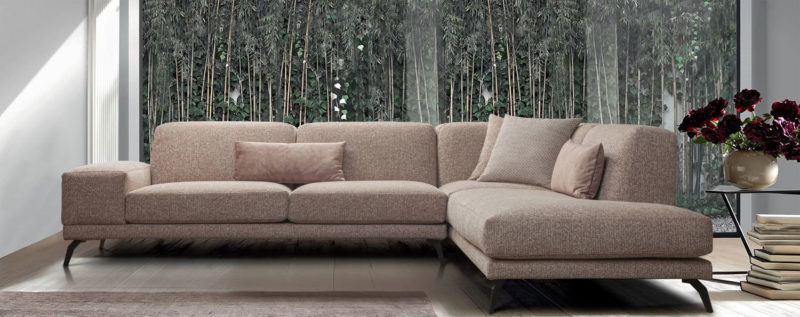 Γωνιακός καναπές υψηλών προδιαγραφών σε σύγχρονο ύφος με αναπαυτικό κάθισμα.