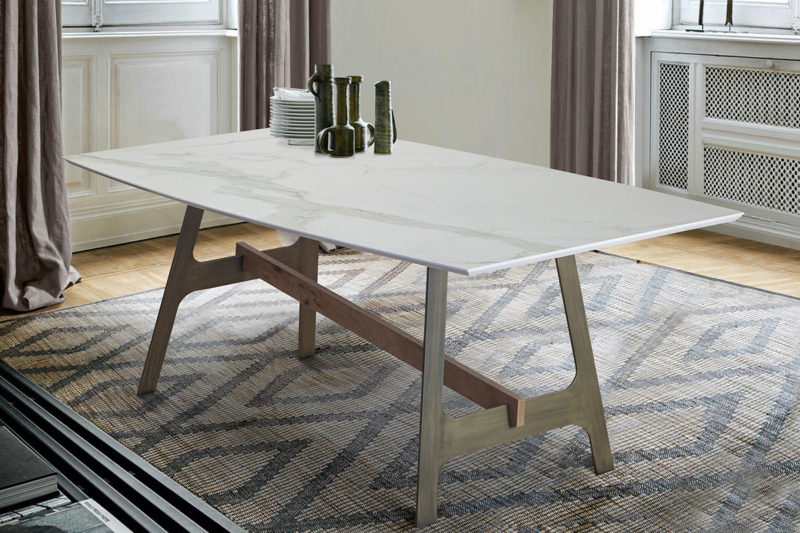 Τραπέζι με κεραμική επιφάνεια και μεταλλική βαφή σε τεχνοτροπία ανοδίωσης.